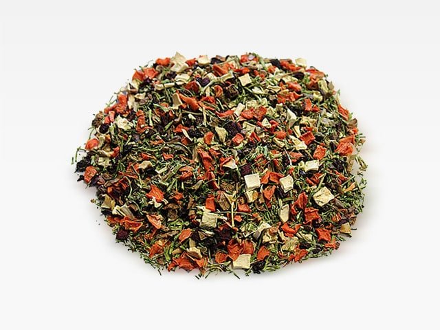 ZusammensetzungPastinake (22 %), Karotte (17 %), Aprikose (10 %), Brokkoli (10 %), Kürbis (10 %), Erbsen (9 %), Birnen (5 %), Äpfel (5 %), Bananen (5 %), Rote Bete (5 %), Cranberries (5 %), Spinat (5 %), Kräuter (2 %) – Basilikum, Rosmarin, Fenchel, Brennnesse.